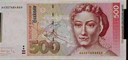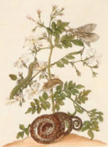 Merian 是德國藝術史上最重要的女畫家,為了紀念她,德國並發行了印製其肖像於上的 500 圓紀念鈔,她的作品多藏於蘇俄聖彼得堡。1992 年,東西文物修復中心曾修復一幅畫於羊皮上的花蟲靜物,是她重要的作品之一。親眼所見,親手所觸,其顏色變化的微妙與用筆技巧的細膩非照片所能傳達,其作品直接表露出的情感,至多年後仍感受深刻。