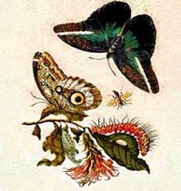 1647 年出生於德國法蘭克福,時為歐洲三十年戰爭時期。Merian 家族為歐洲極為著名的版畫世家,她三歲喪父,從小就愛好花草,個性充滿活力並十分有好奇心,童年時為了畫鬱金香,就從花園裡將鬱金香連根挖出,在當年鬱金香珍貴如黃金,因而被母親與繼父責備,當她拿出所畫之水彩,家人才發現她在藝術上展現的天份,並開始跟隨著繼父在他的畫室中習畫。十一歲時,她看到養蠶的過程,從此引發對昆蟲及蝴蝶生長過程的興趣,開始蒐集許多各種蟲蛹,偷偷地培養這些小昆蟲,觀察其生態,並將所有的過程細節繪畫下來,而奠定她昆蟲學及植物學上的基礎。