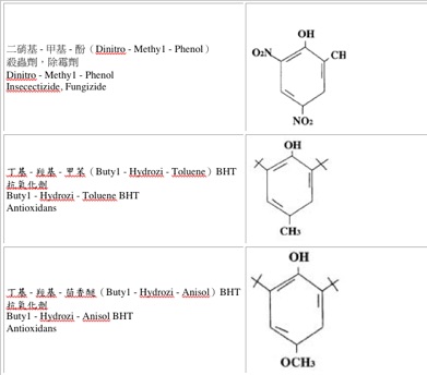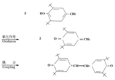 例如 BHT 和 BHA 兩種化學藥品會產生 stilbenquinons