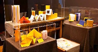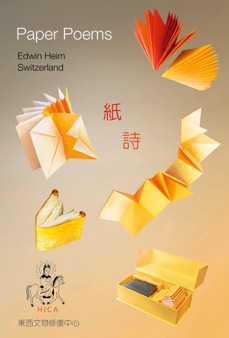 這次榮幸應法鼓文理學院邀請,展出Edwin Heim先生的作品,先生在亞洲雖是陌生,在歐美卻是一位具盛名的老前輩.他的小品蘊含幾分東方趣味,色彩與造型簡明,僅用摺、捲、縫方法,可啟發觀者靈感、製作的樂趣.展覽同時,響應貴校「愛地球」的宗旨,特別設計一個小遊戲:讓大家「來動手」作一個1830年瑞典的「摺疊式地球儀」,親自體驗手指的魔力.