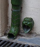 當地多紅土,屋頂皆用紅瓦,牆壁塗淺土色,與山水非常協調,相較下古城外的新建築就太粗俗。處處是各色夾竹桃,烈陽下顏色特鮮艷。小樓房多用可愛的綠陶雨水管,可惜窄巷內卻鋪上水泥,有趣的是;路兩旁向中傾斜,下水道在路中間,使水不近牆腳,很實用。