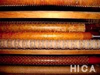 ←失傳的舊式滾筒:細木軸心外,捲上多層紙,再塗不知名的防水劑,百年不變形.