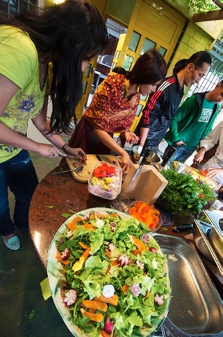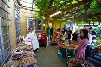 我們設計了六道素食,共用十六種香草,及食用花。來至印度、台灣、意大利,新疆、德國的客人,每人手持食譜,