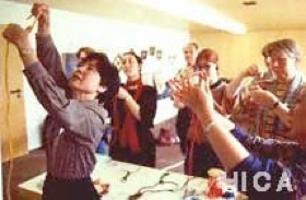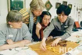 1995 年 5 月,她與夫婿莊先生終於來到德國,先由國際修復協會舉辦「中國結入門班」,這個課開在 Thuebingen 大學山區裡的教學中心,學員遠自挪威、瑞士、美國、德國的專業人員。這星期,天氣晴朗,在優美的山區中,大家很愉快的努力學習,其中的挪威小姐領略最快,反而我最慢。