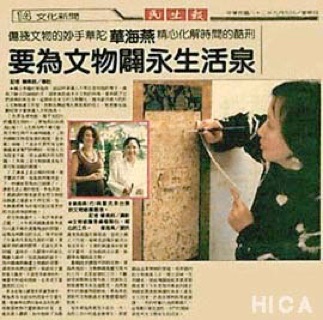 每年華海燕都至少返台一次,為她心目中的基金會催生,期望藉由企業贊助的管道,培育國內的文物修復人才,建立訓練、任用體系,使這塊園地能累積資源與成果;今年更偕同奧地利維也納國家圖書館修護院負責人夏克女士同來,於故宮博物院等地演講,一再的呼籲只為提醒國人,這塊難以被注意的、冷門的領域,卻是所有文物永生的活泉。