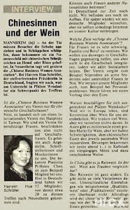 今年秋季,華人婦女工商企管婦女協會德國分會在副會長華海燕女士曼漢(Mannheim)居所及工作室以「美酒及美食」為名,舉辦了一次別開生面的活動。由於海燕事前曾特別叮囑會員,不要在九月十二日(星期六),親自驅車前往曼漢,以免陷入當天「滾石樂團」舉行最後一次世界巡迴表演的車陣中,因此來自北中區的姊妹們,全部聽話行事,分乘火車抵達該城。