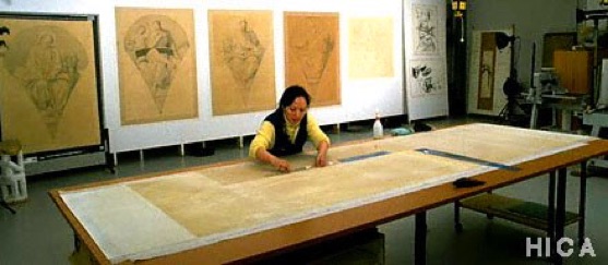 修復工程是從 1993 聖誕節至 1994 年復活節,其中七張最大的作品由 「東西文物修復中心」負責。