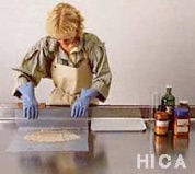 Das zweite wichtige Ereignis war die Einrichtung eines Master-Studiengangs für Textilkonservierung/- restaurierung angegliedert an die Fachhochschule in Bern. Das Studium dauert 5 Jahre, dabei findet der theoretische Teil in der Fachhochschule in Bern statt und die praktische Ausbildung (Praxismodule) im Textilkonservierungsatelier und im Museum der Abegg-Stiftung in Riggisberg. Jedes Jahr kann allerdings nur ein Student aufgenommen werden. Nach 3 Jahren wird eine Bachelor-Thesis verfasst und nach 5 Jahren erfolgt die berufsqualifizierende Master-Arbeit. Am Ende steht der Abschluss „Master of Arts in Conservation-Restoration“. Dabei gibt es keine Semesterferien wie in anderen Studiengängen, da sich die Studenten wie in einem Anstellungsverhältnis befinden. So sind 4 Wochen Urlaub im Jahr gewährt. Die Restaurierungswerkstatt der Abegg-Stiftung ist sehr gut ausgestattet. Es arbeiten in der Regel 5 Studenten und 2 Praktikanten, die von 5 Mitarbeitern betreut werden, an der Restaurierung der Objekte, die zum Großteil aus der eigenen Sammlung stammen. Aktuell steht die Mitarbeit an einer Präsentation aus Rumänien im Zentrum der Tagesordnung.