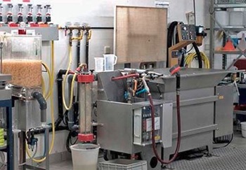 The second generation of the Bagenda machine had been developped in cooperation with the School of Mechanical Engineering in Landshut. This leaf custing device of the Atlantis type, my second example, has more automatic elements and therefore works faster and more efficiently. It is in use mostly in the central workshop for archives of Baden-Württemberg.