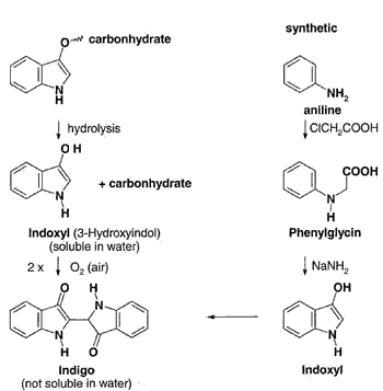 Plants create a variety of different chemical compounds in their cells, e.g. indigo, out of carbon dioxide, light, water and nitrogen. People in laboratories proceed differently: they produce indigo from carbon- and oil-products, using a synthetic process. Synthetic indigo is purer than the indigo obtained from the plant. Natural indigo still contains impurities, which can be detected by means of analytical methods like HPLC (High-performance liquid chromatography). In 1880, Adolf Ritter von Baeyer invented the manufacturing of synthetic indigo and started producing it. Subsequently, indigo synthesis led to the development of the Anilin dyes – “anil” is the Portuguese term for indigo. It is exported very successfully around the world. Since then, plant-based production of indigo has been on the decline.