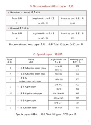 The HICA’s paper collection was accumulated approximately forty years ago, and contains classical paper types of superb quality. All the papers have been handmade at selected craft workshops in the Far East. The number of these workshops, and their skill levels, have steadily declined over recent decades. As auctions in China and Japan are showing, traditional handmade papers are highly coveted nowadays, and difficult to find. The HICA’s collection offers one of the few opportunities to purchase papers of this kind.