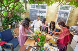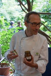 The last concert in my workshop had been long ago. A hundred people had attended it; however, june is vacation time and therefore inconvenient for many people. I resolved to combine the concert with a home cooking class so as to make it more attractive. For this purpose, we hired Mr. Enrico Steuer, an avantgardist cook of the organic movement. The class was vegetarian and comprised the preparation of six courses; using 16 different kinds of herbs. Mr. Steuer quite precisely explained the single steps to our international audience which consisted of 35 people. There was a lot of laughter during the class and afterwards, we enjoyed our menu together.