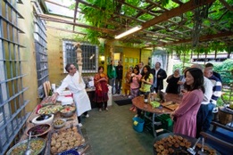 Das letzte Konzert in der Werkstatt war schon lange her. Hundert Leute hatten es besucht, doch der Juni ist Urlaubszeit und daher für viele ungünstig. Um das Konzert attraktiver zu machen, beschloss ich, es mit einem Heimkochkurs zu kombinieren. Hierfür engagierten wir Herrn Enrico Steuer, einen Avantgardekoch der Bio-Bewegung. Der Kochkurs war vegetarisch und umfasste die Zubereitung von sechs Gängen, wobei insgesamt 16 verschiedene Kräuter verwendet wurden. Herr Steuer erklärte unserem internationalen Publikum, bestehend aus 35 Leuten, ganz genau die einzelnen Arbeitsschritte. Beim Kochen wurde viel gelacht und gemeinsam genossen wir anschließend unser Menü.